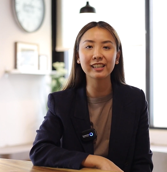พนักงานขายหญิงใช้แอปพลิเคชัน Jubili CRM บนสมาร์ทโฟนเพื่อทำ Sales Check Point เข้าพบลูกค้า